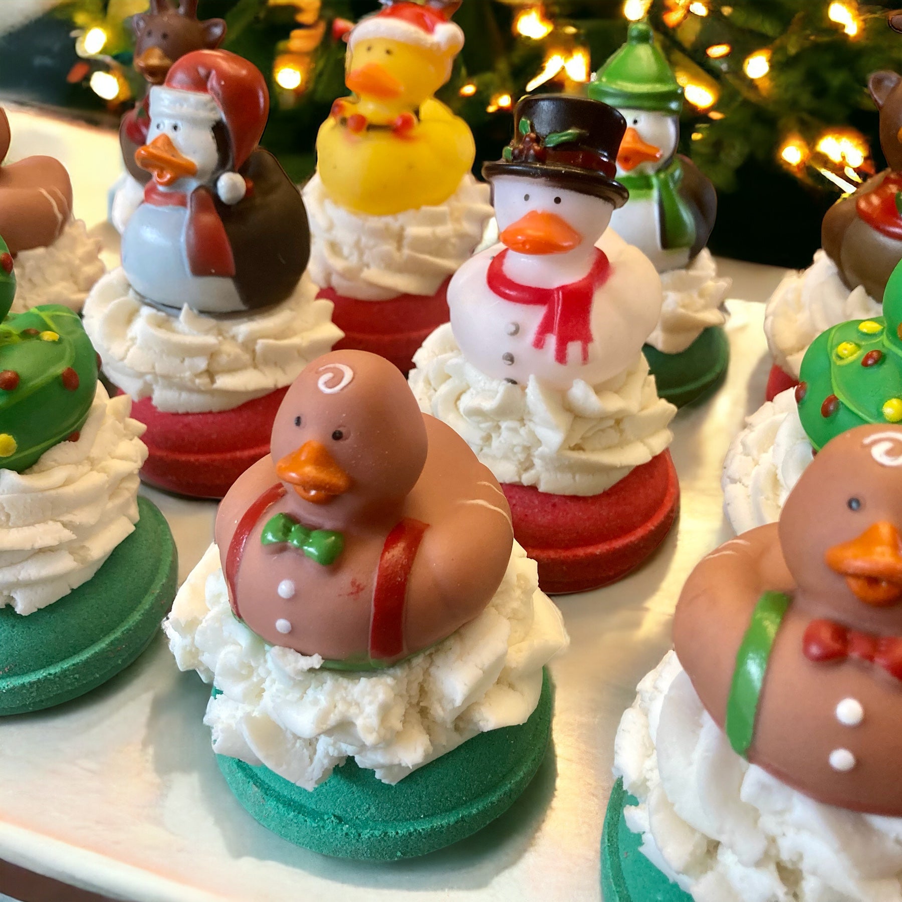 Kids will go crazy for these donut bath bombs with bubble frosting and a rubber ducky on top! The perfect addition to any Christmas stocking! Toy, scent, and colors vary. Scent will be fruity.