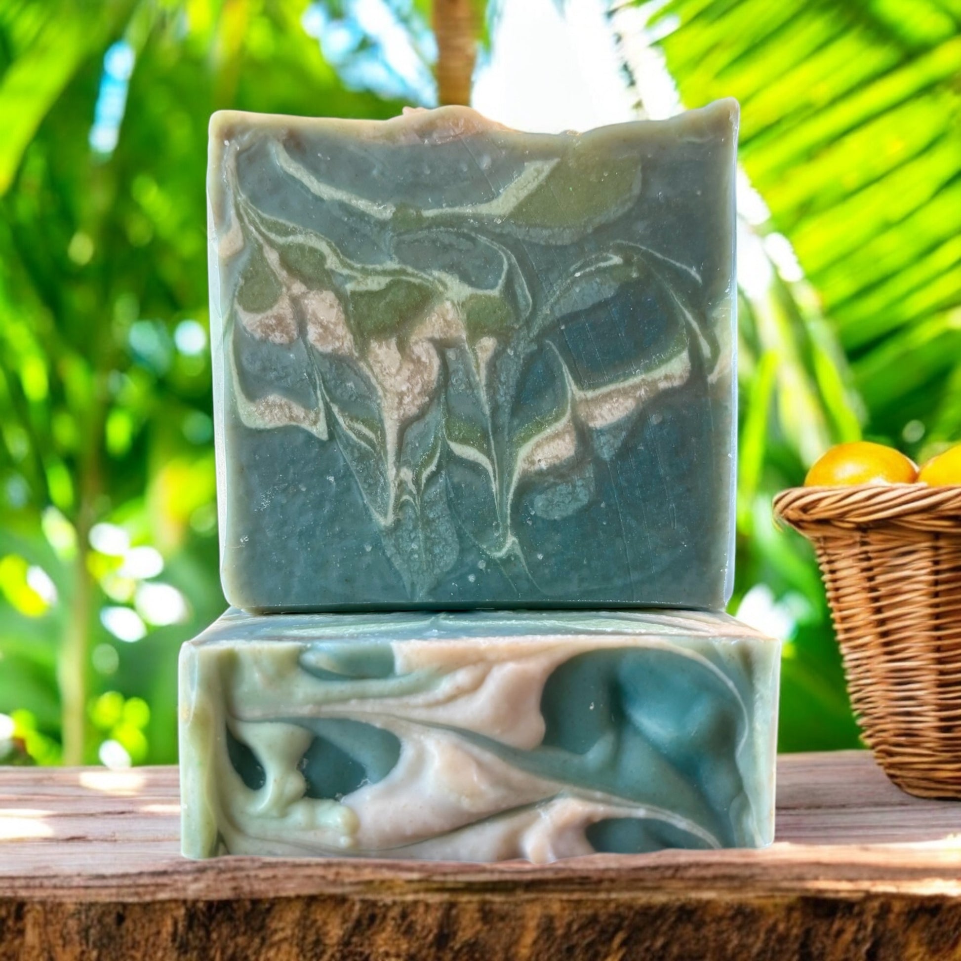This handcrafted goat milk soap will transport you to a lush paradise where the air is infused with the tantalizing scents of exotic greens and bright fruits!